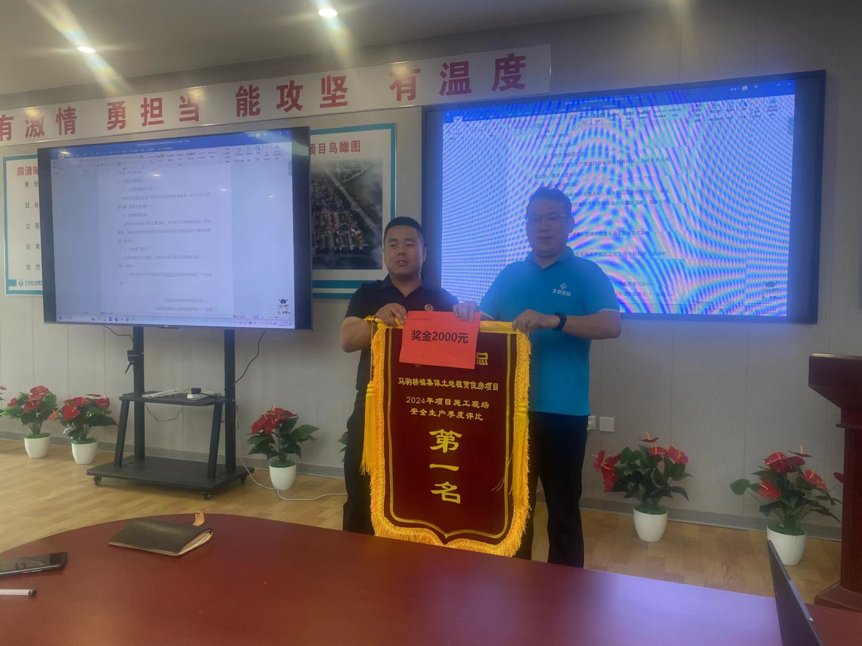 馬駒橋鎮(zhèn)集體土地租賃住房項(xiàng)目,項(xiàng)目管理團(tuán)隊(duì)榮獲“2024年項(xiàng)目施工現(xiàn)場(chǎng)安全生產(chǎn)季度評(píng)比第一名” ,施工現(xiàn)場(chǎng)綜合管理得到總包單位的高度認(rèn)可。希望馬駒橋項(xiàng)目全體管理人員繼續(xù)努力,力爭(zhēng)在進(jìn)度和質(zhì)量方面也取得很好的成績(jī)。